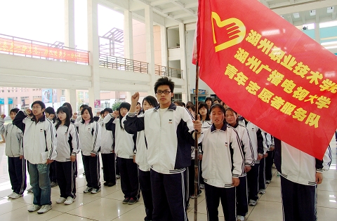 青年志愿者代表在仪式上宣读了倡议书,倡议“奉献,友爱,互助,进步”的志愿精神。