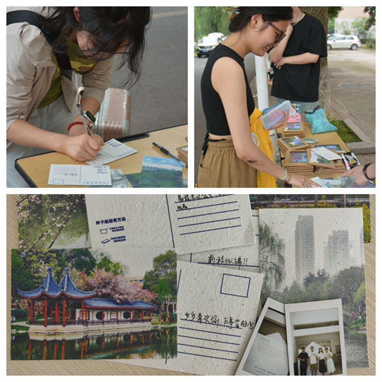 学院定制了一些印有校园景色的种子明信片,供同学们书写寄语,完成留言后,即可获得一张拍立得照片。同学们在明信片写下寄语,无论是风趣幽默接地气的话语,还是饱含哲理意味深长的诗句,都表达了经管学子对母校、校友的眷恋和不舍。现场的同学们纷纷表示,“种子明信片很有纪念意义,把自己的祝福种下,等待开出一朵花的过程是一件很浪漫的事情”。