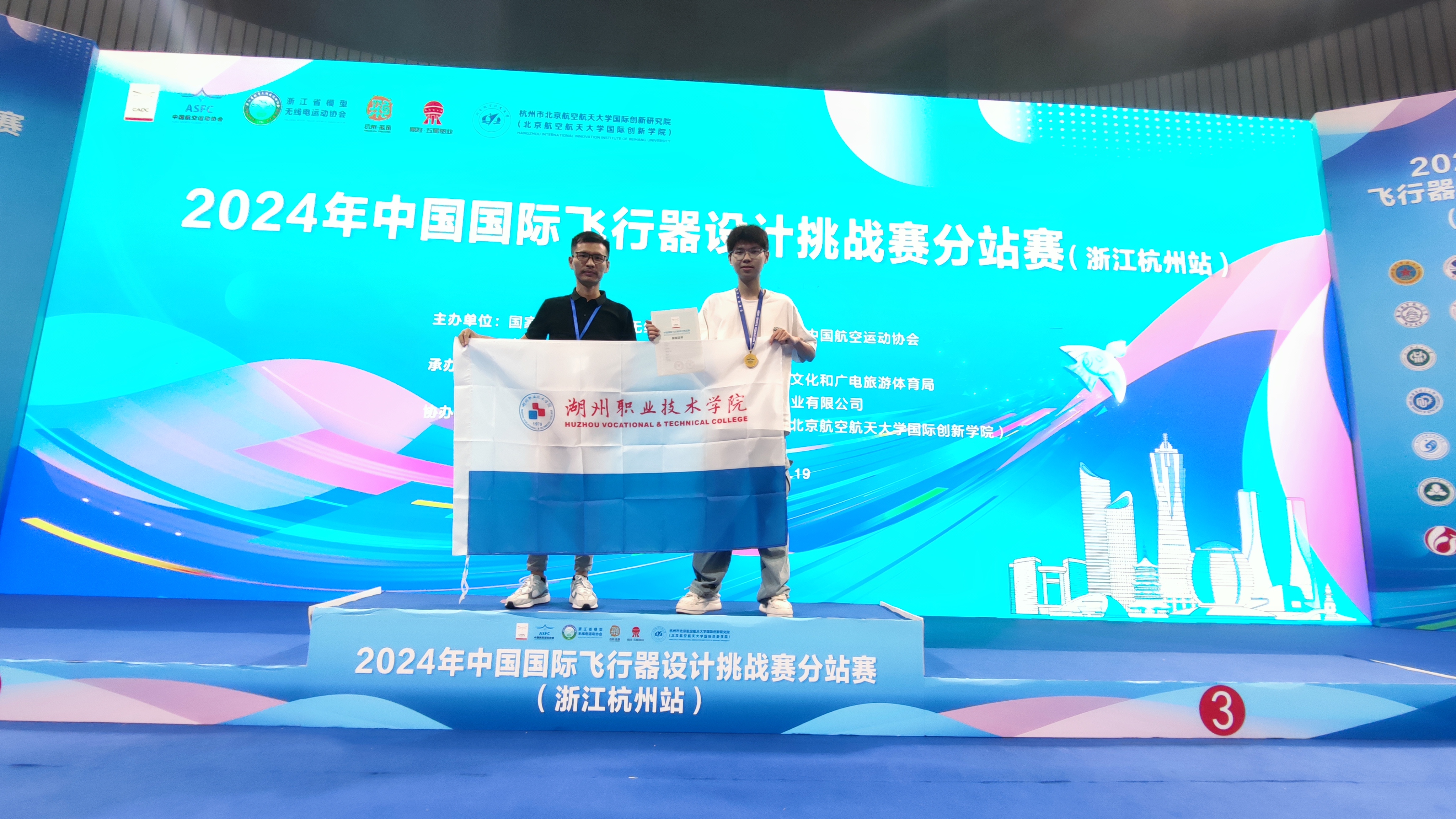 近日,2024年中国国际飞行器设计挑战赛浙江杭州分站赛于在浙江杭州落幕。经过激烈角逐,我校新能源工程与汽车学院学生叶金豪在电动滑翔机项目大学生组中脱颖而出,以第一名的成绩勇夺金牌!